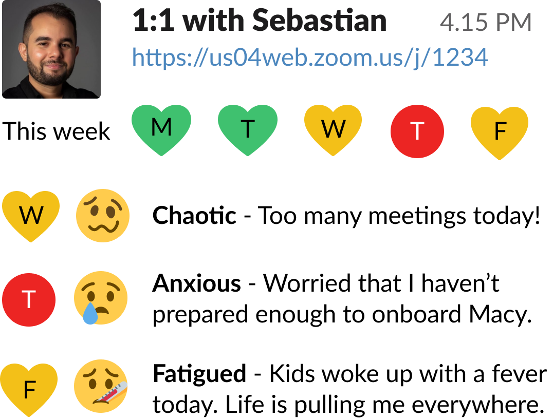 Pre-meeting briefs on your team member's recent mental health to help facilitate critical conversations